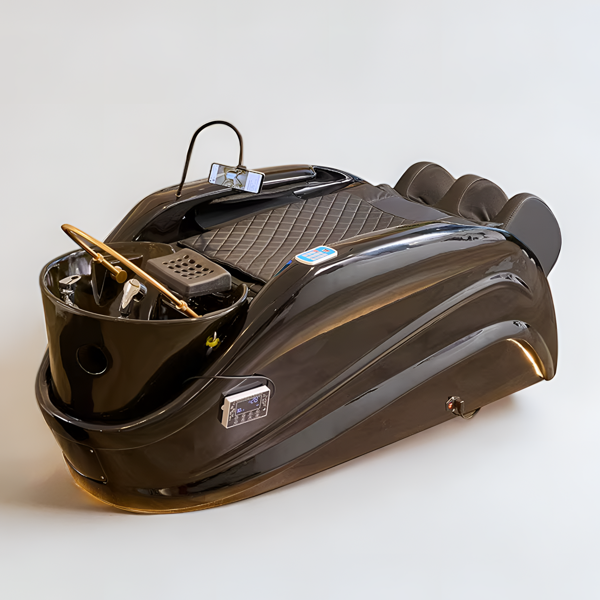 Sora est un lit Head Spa japonais pensé pour une détente profonde sans compromis sur l’efficacité. Destiné aux salons, spas et instituts, il offre une expérience enveloppante grâce à son massage dos + son reposes jambes et ses accoudoirs ergonomiques qui relâchent immédiatement les tensions.